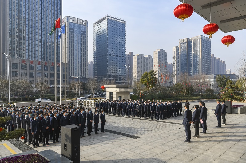 32595公司舉行2021年春節(jié)升旗儀式暨 鄭州市平安建設(shè)基層創(chuàng)建示范單位揭牌儀式