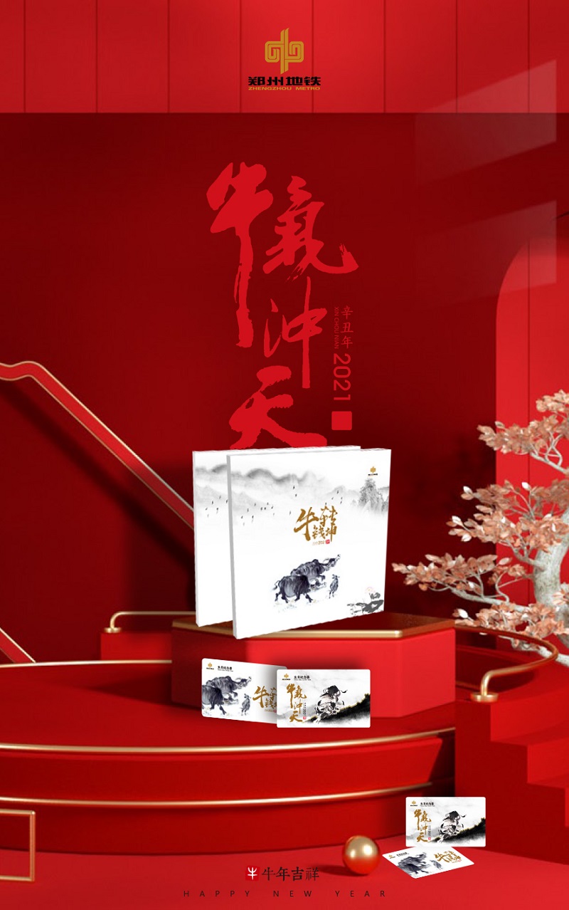 金牛賀歲,五福祥瑞。在新春佳節(jié)到來之際,鄭州地鐵牛年《牛氣沖天》水墨生肖紀念票面向社會公開發(fā)行。丑年為大,大哉開元,本次牛年生肖紀念票采取傳統(tǒng)中國水墨畫風格,畫中吉祥牛兒帶著瑞氣、攜著財氣給大家送福。每套紀念冊內(nèi)含兩張票卡,每張票卡全線網(wǎng)可乘車10次,使用有效期至2022年6月30日,售價136元/套。乘客可通過鄭州地鐵淘寶文化紀念品官方店、微信地鐵文創(chuàng)薈商城購買。